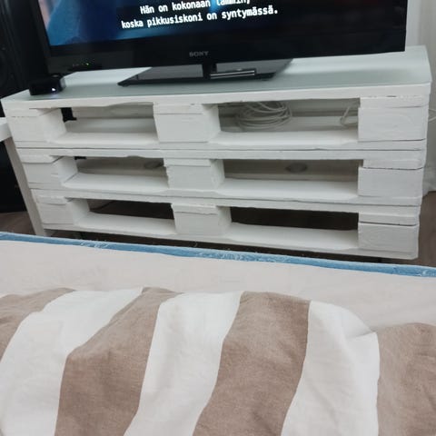 Valkoinen TV taso. Pientä käytön jälkeä, yleisilme siisti. Eläintalous.