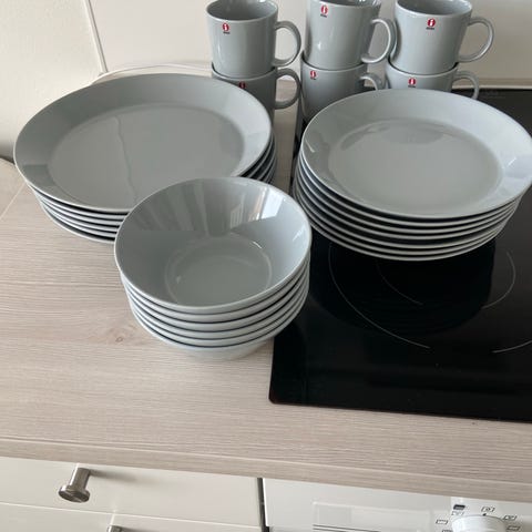 Teema astioita harmaa 4 kpl 26 cm lautanen 3 kpl 21,5 lautanen 4 kpl 15 cm syvälautanen 2 kpl kuppi + muumimuki