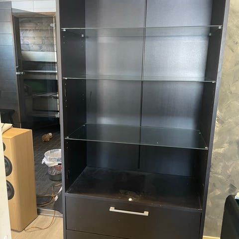 Hyllykön alakulmassa on koiran puremajälkiä (lisäkuva).