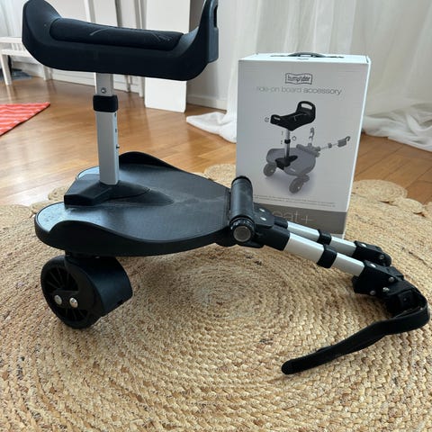 Paljon käytetty mutta täysin ehjä ja toimiva Bumprider-seisomalauta istuimella. Istuimen saa pois, samoin käsituen. Helppo pikakiinnitys rattaisiin, menee universaalisti ”kaikkiin” lastenvaunuihin/rattaisiin. Laajat säätömahdollisuudet, istuimen saa pikalukituksella useampaan korkeustasoon.