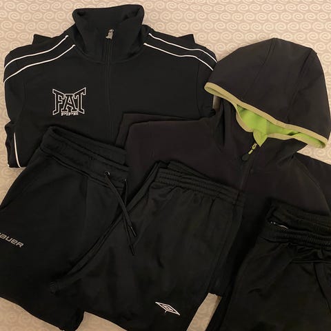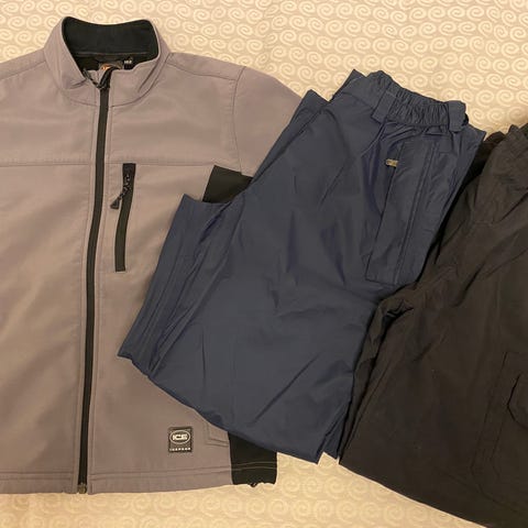 Nämä olleet suurinpiirtein samaan aikaan käytössä, joten koot sopii yhteen. Siistikuntoista ja ehjää, mutta toki käytetyissä vaatteissa normaalia käyttökulumaa (softshell housut paikattu polvesta). Nämä myydään pakettina. Pipot ja lippikset kuuluu mukaan.