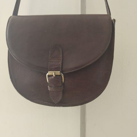 Pieni litteä käsilaukku rannelenkillä.