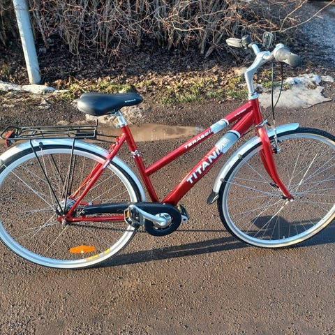 Hyväkuntoinen naisten 28" Jupiter polkupyörä. Kolme vaihdetta. Käsi- ja jalkajarru. Maksu vain käteinen.