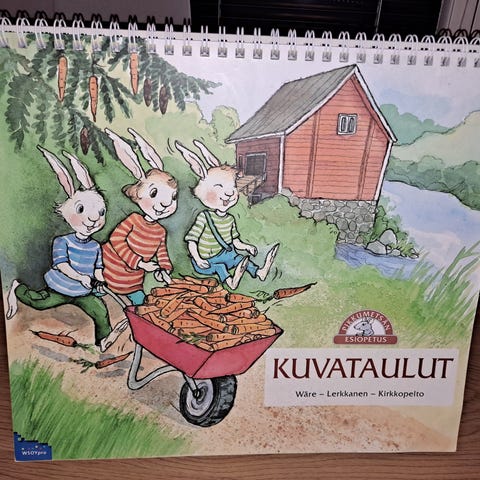 Kuvanmukainen tehtäväkirja eskarilaiselle.
