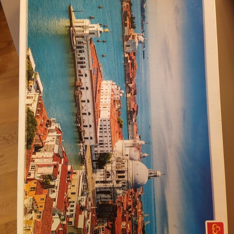 Hyväkuntoinen palapeli 2000 palaa ja kuvana Venetsian kaupunkimaisema gondoleineen ja kanaaleineen.