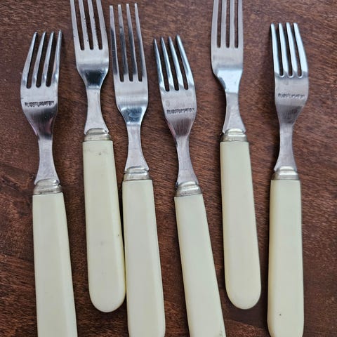 Hacmannin vanhoja ruokailuvälineitä. Sorsakoski. Hackman 18/8 hyvässä kunnossa. Yhteensä N.36kpl