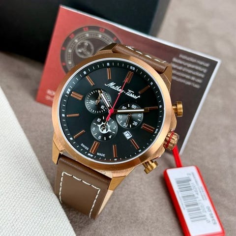 Upea herraherkullinen Mathey Tissot, malli H411AV. Kellon voimanlähteenä on kvartsi-koneisto, ja siinä on päivämääränäyttö klo 6.00. Hyvin luettava värillisen taustan ja hopeanväristen yksityiskohtien ansiosta. Huomiota herättävä ulkonäkö sopivalla värisellä nahkarullakellonrannekkeella.Kellon mukana toimitetaan näytetyt (tyhjä) tarvikkeet.Kellon tiedot:Koneisto: QuartzKotelon materiaali: teräsLäpäisar: noin 42 mm verroksellaHihnan pituus: noin 21 cmValmistusvuosi: 2024Lähetetään vakuutetusti.Kuvat ovat osa kuvausta.
