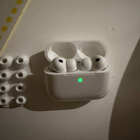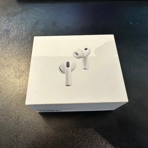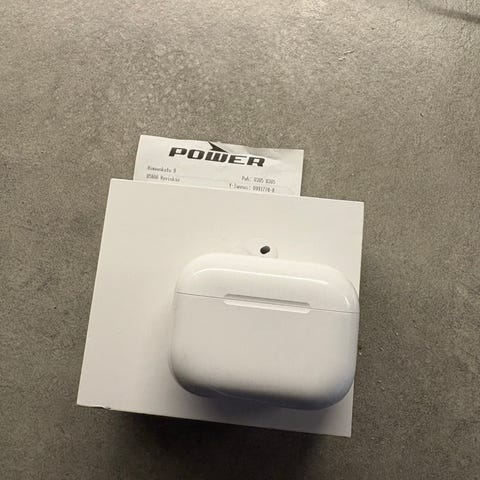 Apple AirPods Pro -langattomat nappikuulokkeet. Väri valkoinen. Kuulokkeet alkuperäisessä pakkauksessa. Sopivat yhteensopiviin Apple-laitteisiin ja muihin Bluetoothia tukeviin laitteisiin langatonta äänentoistoa varten. Malli AirPods Pro 3 näkyy pakkauksessa.