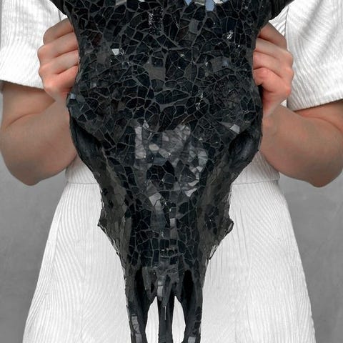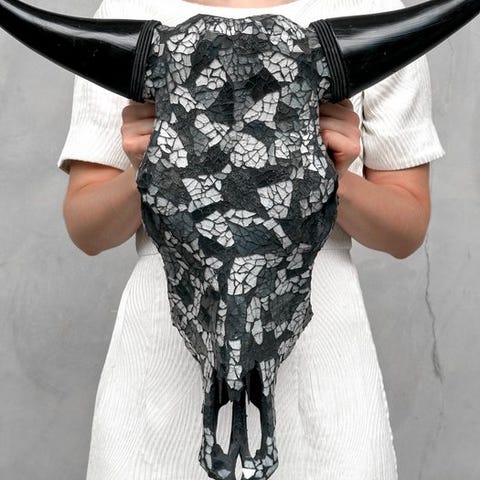 Ei lähtöhintaa - upea lehmän pääkallo lasimosaiikkikoristeella - kulta-must