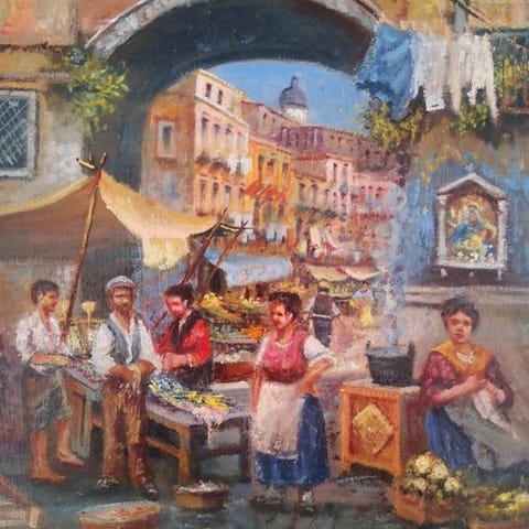 Kaunis öljymaalaus kankaalle, kooltaan 30 x 40, mestari De Santis'n, joka kuvaa kaunista Madonnaa lapsen kanssa. Upeita värejä, erinomainen maalaustaito. Maalaus on varustettu viehättävällä kehyksellä, jonka koko on 49 x 59 (kehys ilmainen). Peräisin yksityiskokoelmasta ja toimitus on seurattavissa.