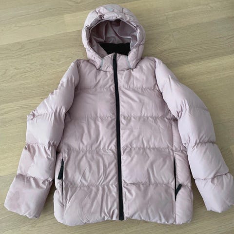 Kevyttoppatakki kokoa 158, merkki näkyy kuvissa. Satunnaisesti käytetty, kunto hyvä.