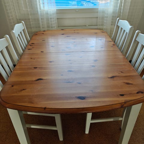 Myydään korkeakiiltovalkoinen ruokapöytä (tuolit eivät sisälly kauppaan). Siistissä kunnossa, vain nouto Paimiosta.