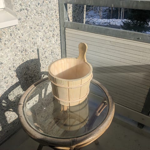 40v sitten hankittu puukiulu/ haarikka. Halkaisija 15,5cm ja korkeus 11 / 23cm. Ollut koristeena, laita sisään vaikka kukkaruukku! Nouto.
