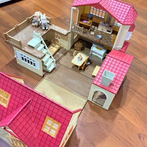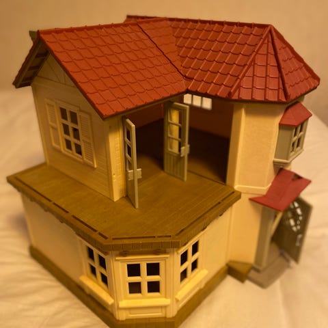 Sylvanian Families leikkitalosetti, johon kuuluu kaksikerroksinen talo sekä useita eläinhahmoja ja pieniä tarvikkeita. Setissä on muun muassa talo parvekkeella ja riippumatolla, pöytä ja tuoleja, uuni tai takka sekä erilaisia pieniä esineitä, kuten kastelukannu ja koristeita. Yhteensä 6 pienempää hahmoa ja yksi isompi. Sopii roolileikkeihin ja kokoelman täydentämiseen Sylvanian Families -sarjassa.
