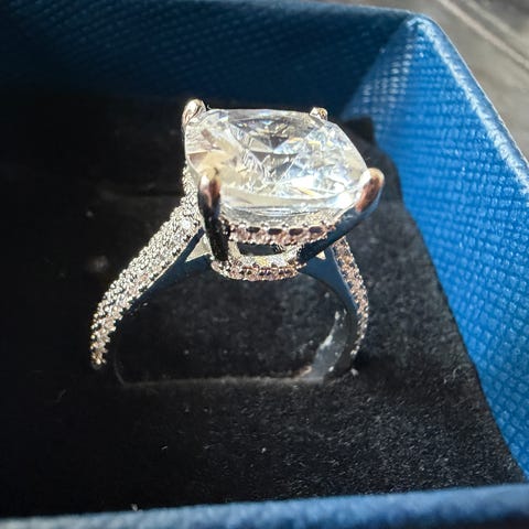 Uusi 2.00ct Diamond Moissanite hopeasormus todistuksella, säädettävä koko