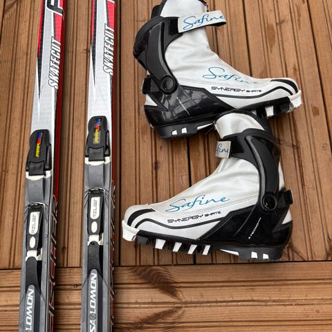 Kummatkin jo kovia kokeneita, mutta toimivat varmasti luisteluhiihtoon tutustuttaessa. Itsellä normaalisti jalka 45-kokoa ja nuo monot ovat mahtuneet hyvin. Sukset ollut 190cm/80kg-kuskilla, mutta harrastehiihtoon menevät varmaan alueella 70-95kg/175-200cm. Kaupan päälle myös Karhun luistelusukset, jotka aika huonossa kunnossa ja ne myös SNS-Pilot-siteillä. Jos noita sauvoja vielä jäljellä, niin saat kaupan päälle. Sauvojen pituudet 164cm ja 153cm.