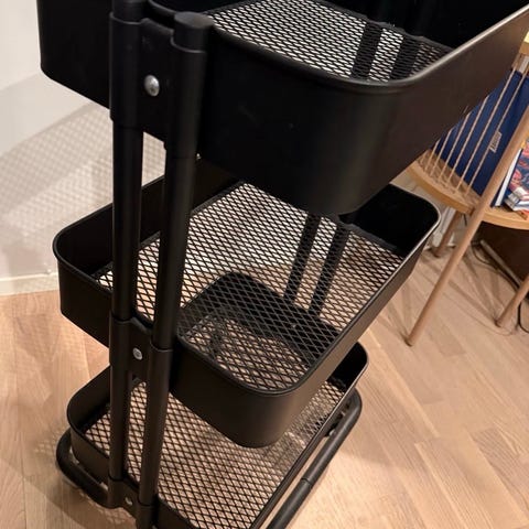 Myydään nimellä 'tarjoiluvaunu', mutta on siis erinomainen liikuteltava hylly kaikenlaiseen säilytykseen.