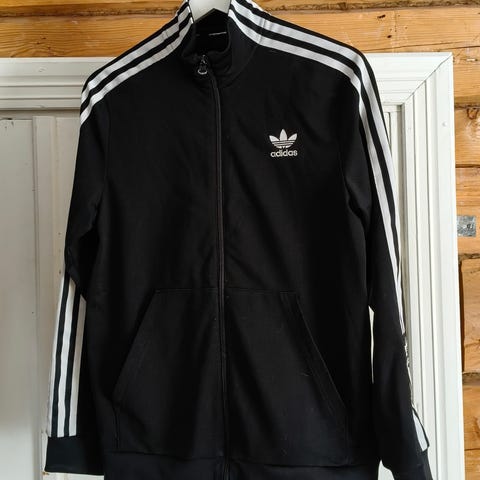 Adidas verkkatakki miehille. Koko M. Väri punainen, valkoiset raidat hihoissa ja Adidas-logo rinnassa. Edessä vetoketju. Sopii arki- ja vapaa-ajan käyttöön.