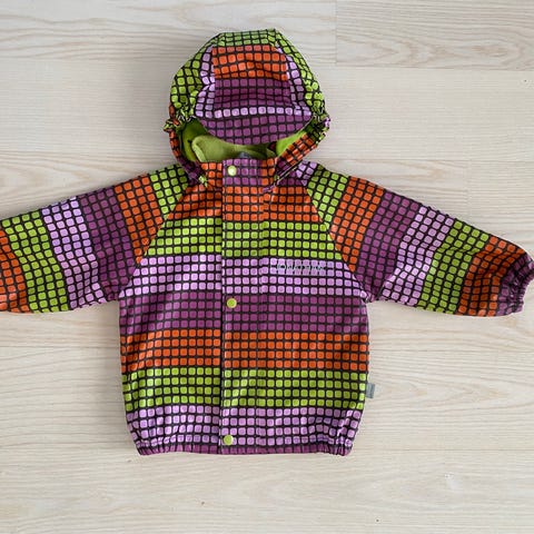 Erittäin hyvässä kunnossa oleva fleecevuorellinen sadehaalari koko 80.