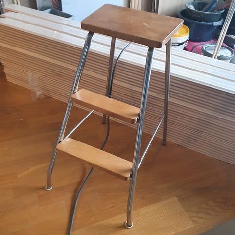 Myydään pois muuton alta siisti kaksiportainen, metalli - koivu porrasjakkara. Hinta uutena n 60 euroa.