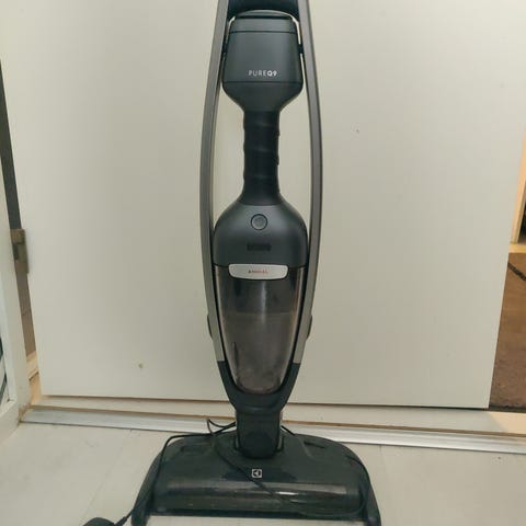 Electrolux varsi-imuri. Johdoton varsi-imuri, jossa irrotettava käsiosan imuri ja useita lisäsuulakkeita erilaisille pinnoille. Laitteessa on pölysäiliö, pestävä suodatin ja latausasema.