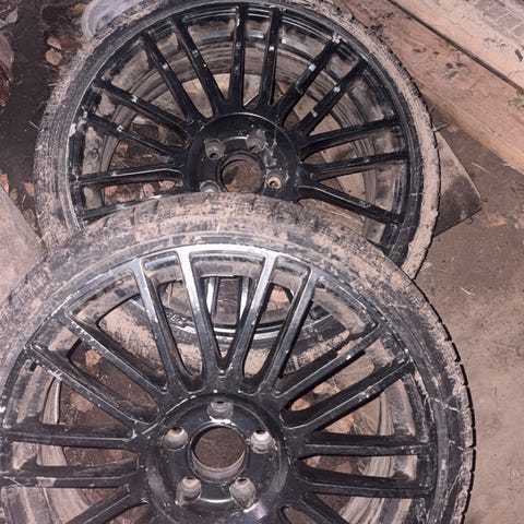 19tuumaset vanteet 11 tuumaa on leveys. Ei oo hitsailtu. Jonkin näköset renkaat.