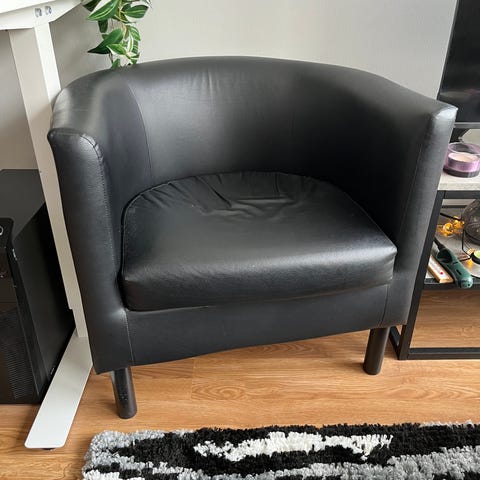 Siisti ja ehjä nahkainen nojatuoli. Nouto tai kulkeutuu korvausta vastaan.