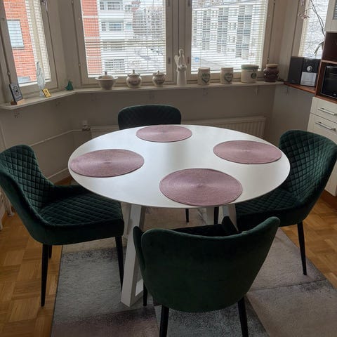 Pyöreä ruokapöytä ja tuolit