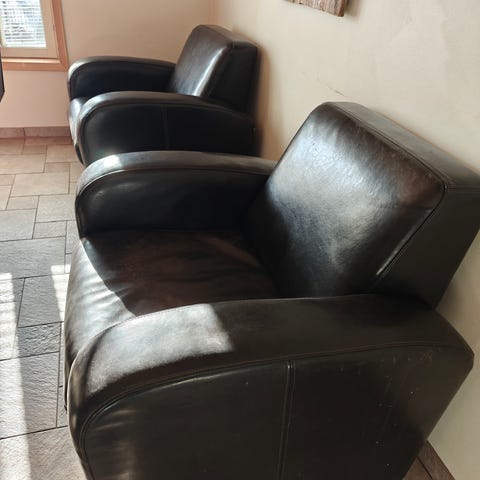 Työn raskaan raatajalle sopivasti kulahtanut Martin Crane nojatuoli. Ei haittaa vaikka rojahtaa likaisissa haalareissa ja moottoriöljy pitää nupukin notkeana. Kiitos ja anteeksi.