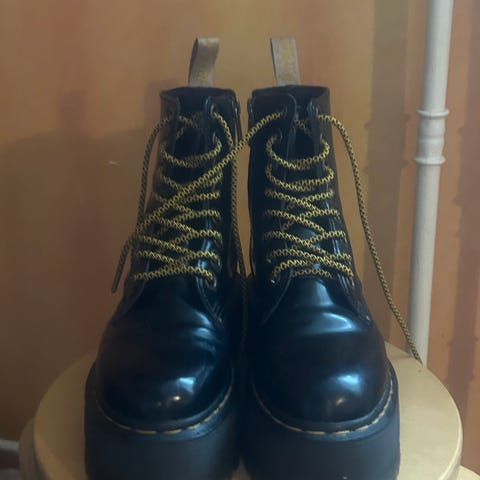 Palladium Pallasquad mustat platform maiharit. Koko 38. Nahkaa. Käytetty kerran ja todettu liian isoiksi. Sivulla vetoketju ja sisällä maailman pehmein pohjallinen, kengät ovat siis supermukavat jalassa. OVH 180€