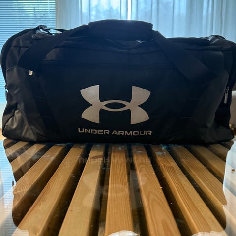 Under Armour -merkkinen punainen kangasreppu polyesteriä.