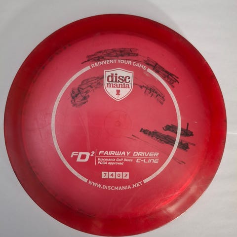 400-muovinen D2. Kiekossa paljon pintanaarmuja. Takana vanha puhelinnumero reunassa.