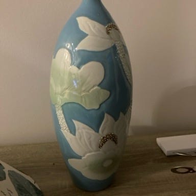 Mäntyharjun Lasin tuotantoa ”Röpöskä” Eero Rislakki. Violetti maljakko. Ollut tuotannossa 1968-1971. Pienet nirhaumat suuaukolla, pyydä niistä kuvat.