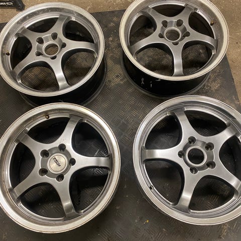 Takaset 9.5" leveät, et 1, päällä 225/40 18 renkaat jotka puoli kuntoiset.