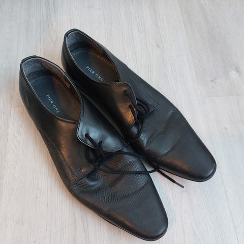 Miesten mustat kengät, koko 48. Mustaa nahkaa. Vain pari kertaa käytetty. Ei laatikkoa mukana.