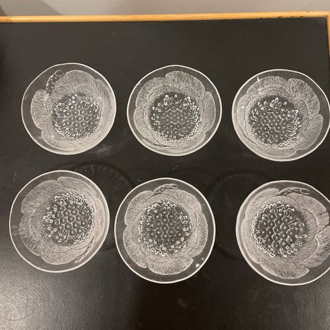 Myynnissä myös jälkiruokakulhot, juomalaseja ja tarjoilulautanen