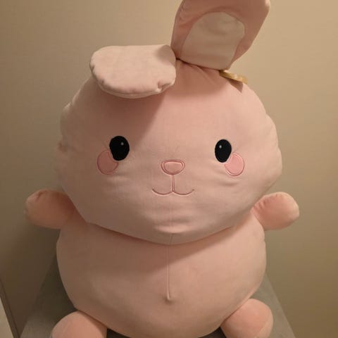 Valeapunainen pupu, korkeus 40 cm. Nouto Hervannasta.