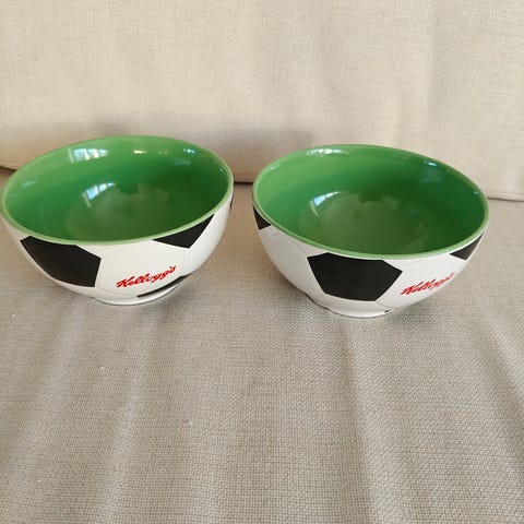 Kellogs neljä murokulhoa, jokaisessa kiinteät pillit. Kukko kulhossa kuva puoliksi irti, saa varmaan pikaliimalla korjattua, muut kunnossa.