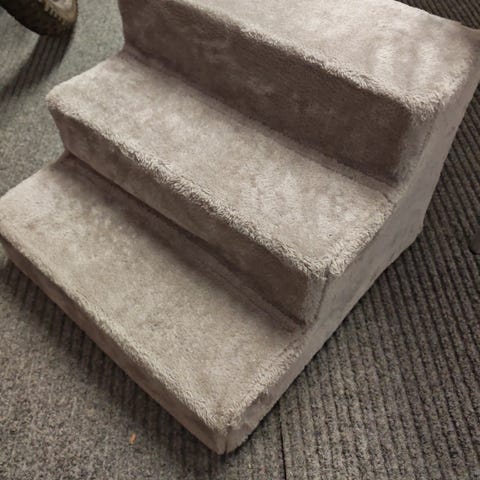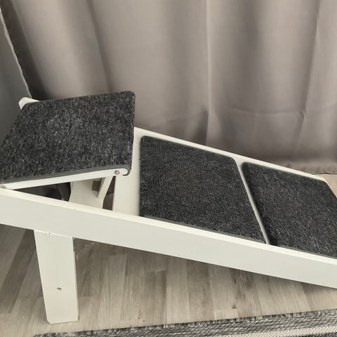 Koiran portaat, merkki Trixie. Portaisiin laitettu liukuesteeksi pehmustettu matto.