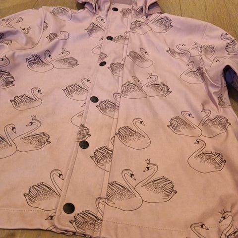 Myydään pinkki flamingokuvioinen sadetakki koossa 122. Merkki Lotta ja Lassi. Siisti kunto.