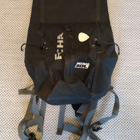 Kaksi kuivapussitaskua. Verkkopaneeli kuminauhalla, jonka alle saa vaikka sadevaatteet näppärästi. Pieni vetoketjullinen tasku sisällä. Juomarakolle paikka ja läpiviennit.