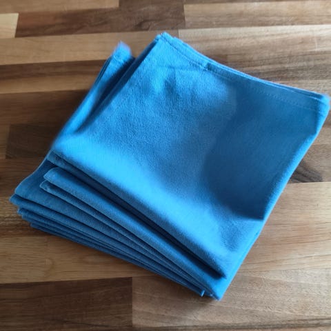 Vaaleansini-valkoruudulliset keittiöpyyhkeet, jotka ostettu joskus ajatuksella käyttää niitä lautasliinoina. Puuvillaa tai puuvilla-pellavaa, tuotelappuja ei tallella. Uudet tuotteet, ei käytetty, joten siistit ja tahrattomat. Yhteensä 8 kpl.