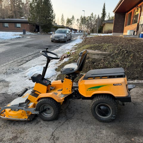 Stigan etuleikkuri hydrostaattivaihteistolla ja voimakkaalla briggs&stratton 2 sylinterisellä 18hv moottorilla. Toimiva, juuri huollettu. Ulkokuori hiukan auringon haalistama mutta tekniikaltaan hyväkuntoinen.