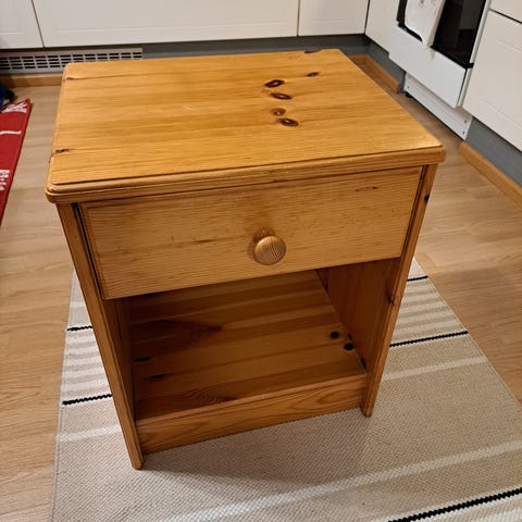 Myydään pieni yöpöytä laatikolla.