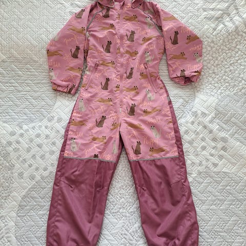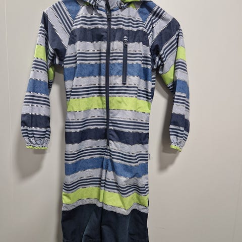 Myydään välikausihaalari, kokoa 122. Hyväkuntoinen. Haalarissa huppu ja jalkalenksut. Vettähylkivä, ohut materiaali.