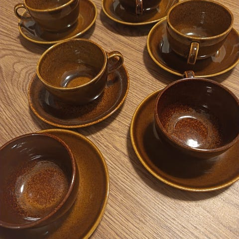Todella kauniit ja vanhat hyväkuntoiset K. Steinmann Porzellanfabrikenin valmistamat kupit sisältäen lautaset. Nämä ovat olleet vain satunnaisessa käytössä ja tiskikoneessa näitä ei ole pesty. Näitä on yhteensä 6+6.
