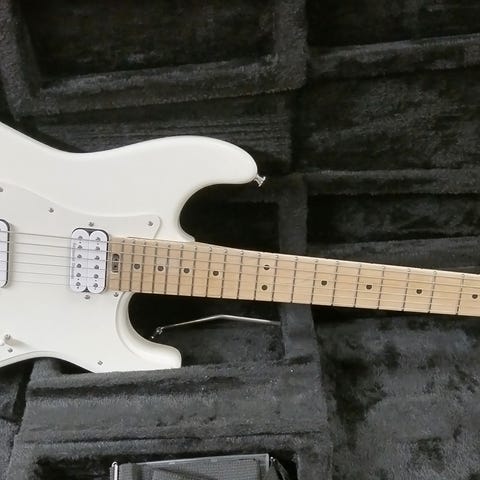 Erittäin hyvässä kunnossa. Ei kolhuja . Ainut ” miinus” Floyd Rose tallan blokki rikki. Seosmetallia joka ajansaatossa haprastunut . Vaihdoin tilalle tarvikeblokin ( messinkiä ) . Nyt voi soittaa , mutta hienoviritystä ei voi tehdä tremolosta. Ja yläsatulan kielilukot tarpeettomia. Myytävänä tähän olisi koko tremolo systeemi , mutta maksaa 100€ niin tyydyin nykyiseen systeemiin . Charvellen mikit ja virittimet. Mahtava ohut kaula. Kevyt soittaa. Nauhat hyvässä kunnossa. Mukaan kuvissa näkyvä laukku. Tästä laatusoitin halvalla