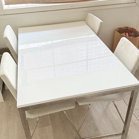 Muuten täysin kunnossa oleva ruokapöytä, vaatii pientä maalausfiksausta kolhuihin.