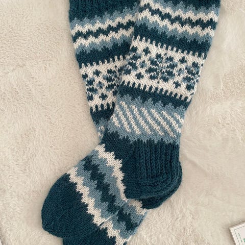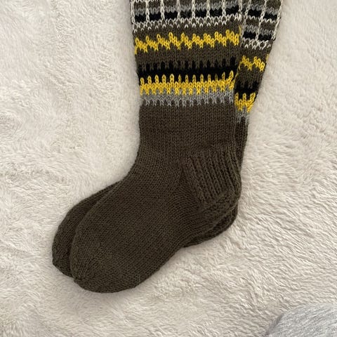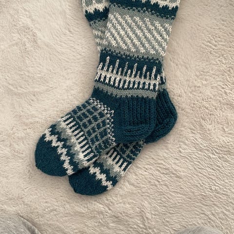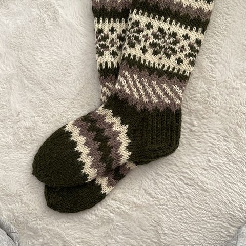 7-veljestä langasta kirjoneulesukat.