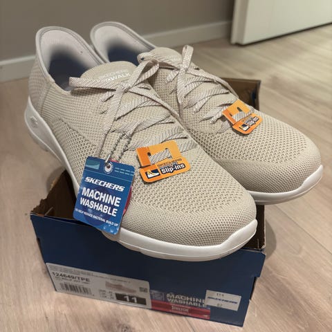 Skechers Slip-Ins Go Walk Flex kenkä on vedenpitävä, joten syksyn lenkkipoluilla voit kävellä huoletta jalat kuivina. Muut hyvät ominaisuudet kuten Air-Cooled Memory Foam-pohjallinen, Slip-Ins ja Breathe Easy Technology antavat lisämukavuutta joka päivään.